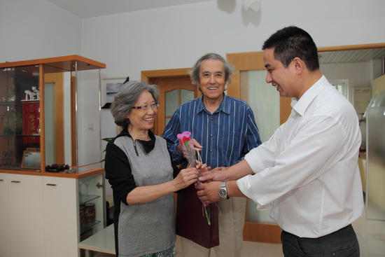 手捧鲜花,大家的心情是异常激动的。家住栖月苑的一户教师家庭,老夫妻俩都70多岁了,都是退休老师,他们对于新能源;的这次活动赞赏有加。徐老师说:我们在扬州没有亲戚朋友,儿子、孙子都在外地,非常感谢lsquo;新能源能在教师节前夕给我们送来鲜花,关心我们,谢谢你们让我们感觉到家的温暖!;
